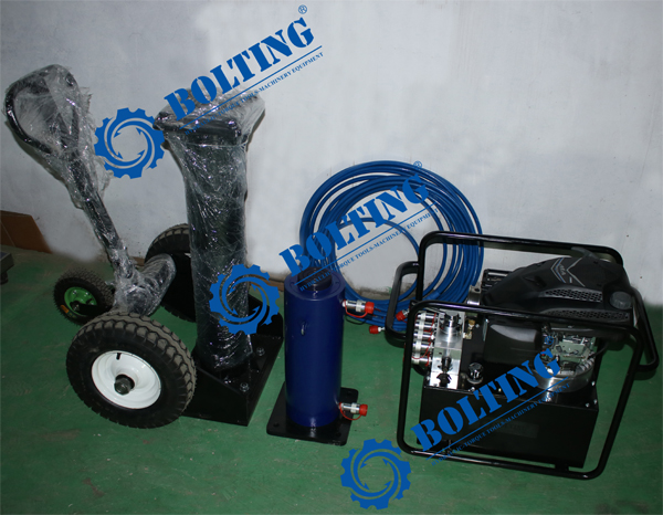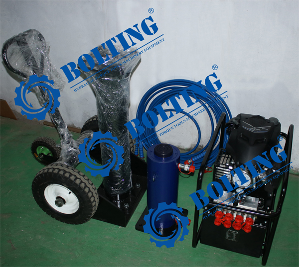 近日為河南某重工企業(yè)定制的移動(dòng)式液壓駕車機(jī)準(zhǔn)備發(fā)貨,因客戶現(xiàn)場(chǎng)工況受限,采用汽油發(fā)動(dòng)機(jī)動(dòng)力液壓泵作為動(dòng)力源,配備移動(dòng)駕車機(jī),50T通用型雙作用液壓千斤頂和10m的雙聯(lián)液壓油管,簡(jiǎn)便快捷的解決了重物頂升問(wèn)題。
